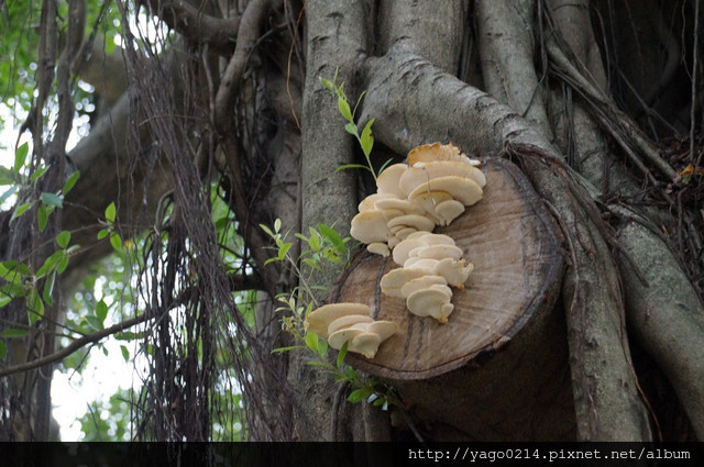 種在一旁的榕樹也非常的巨大,還長香菇囧