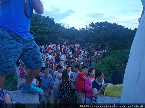 一回頭,哇!跟夕陽有點比的壯觀人潮呀!