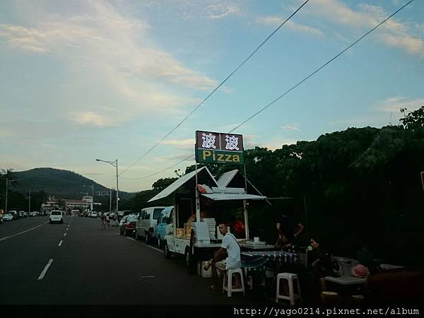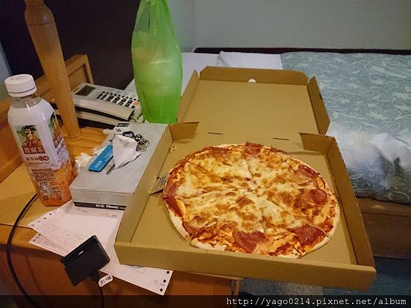 我在路邊買了個pizza回去吃,
