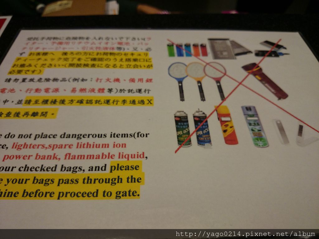 要放在手提行李裡,過X光時被發現要現場換過來很麻煩,