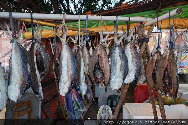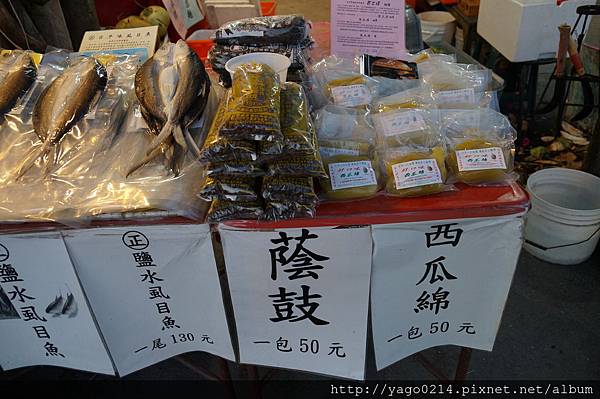 一旁的店家會在這裡賣虱目魚乾與西瓜綿,這裡的土產,